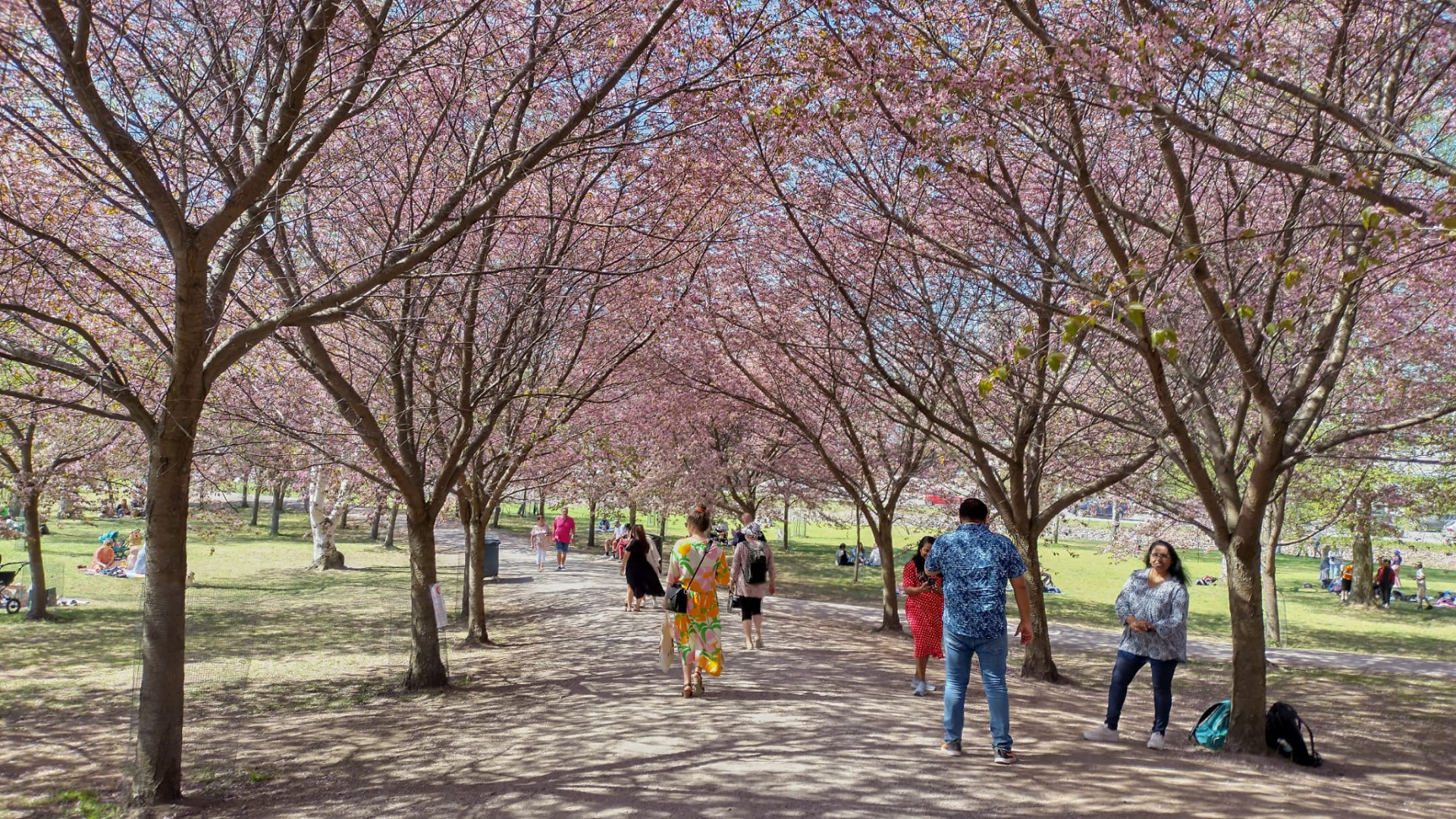 Käväistiin vaateostoksilta tullessa Roihuvuoren kirsikankukkapuisto ssa.