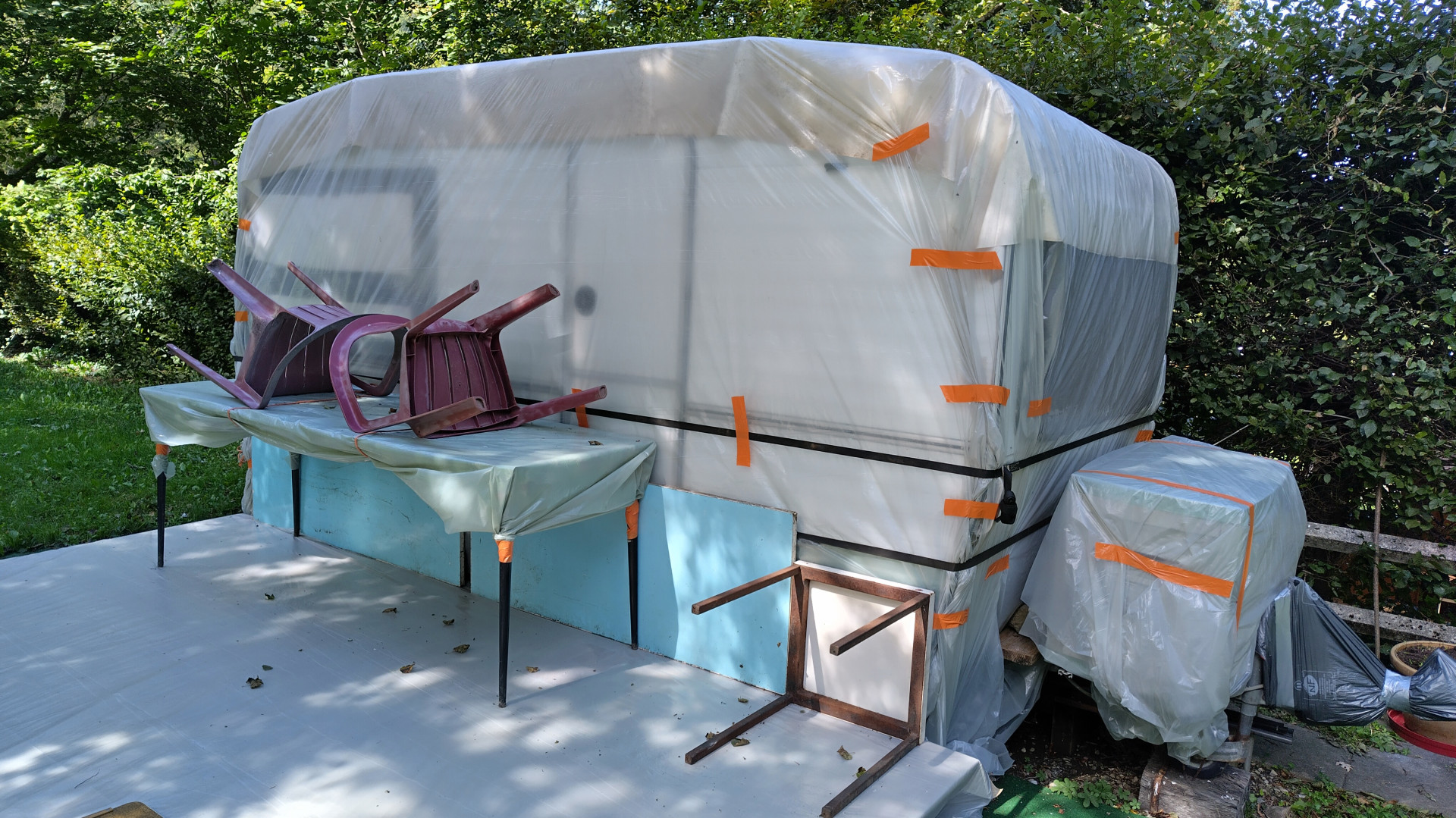 Eilen tein auton huputuksen valmiiksi, ei oo tiivis paketti, toinen sivu ja pääty on auki. Ainakin viime talven talvehti hyvin. Saas nähdä miten temun peitto kestää lumet ja jään. Repeääkö vai ei.