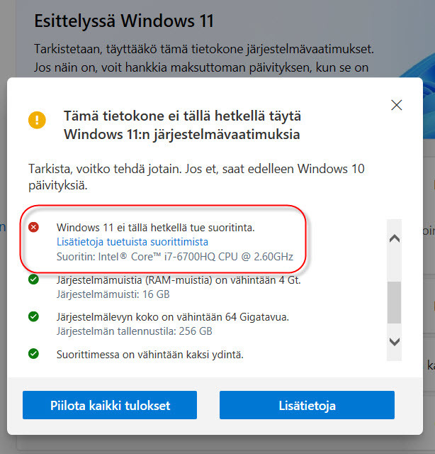 Kun koneessa on rajallinen määrä varattuna Windowsille (nyt w10), niin paljonko pitää asemalla olla tyhjää tilaa, jotta w11 päivitys onnistuu?