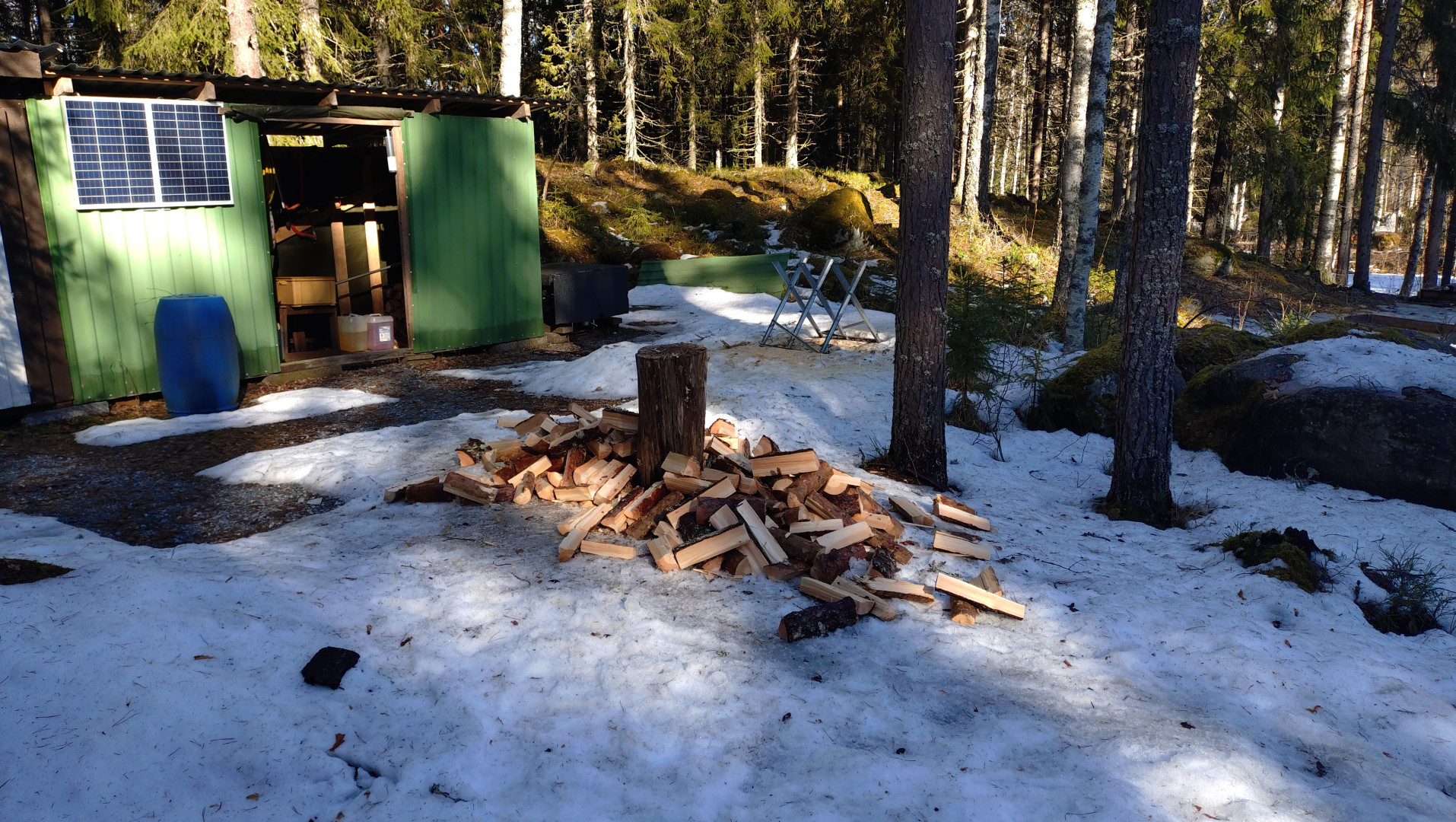 Kämppä siivottu lattiasta kattoon, kauppakassi myös tiskattu pihalla nyt sapuskan tekoon ja illalla saunaan Thumb