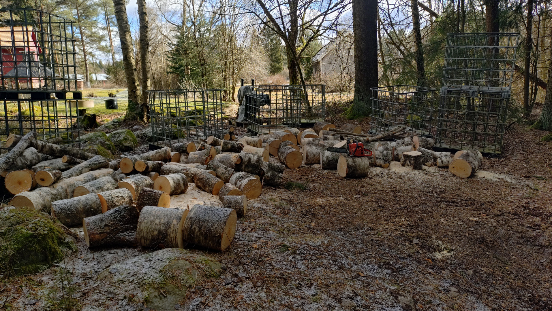 Mä pilkoin loput puut ja sain pinoamiseen kaveriksi Eemin 6v. Yllättävän siistin pinon teki, ei tarvinnut vaarin juurikaan tasalla sitä.