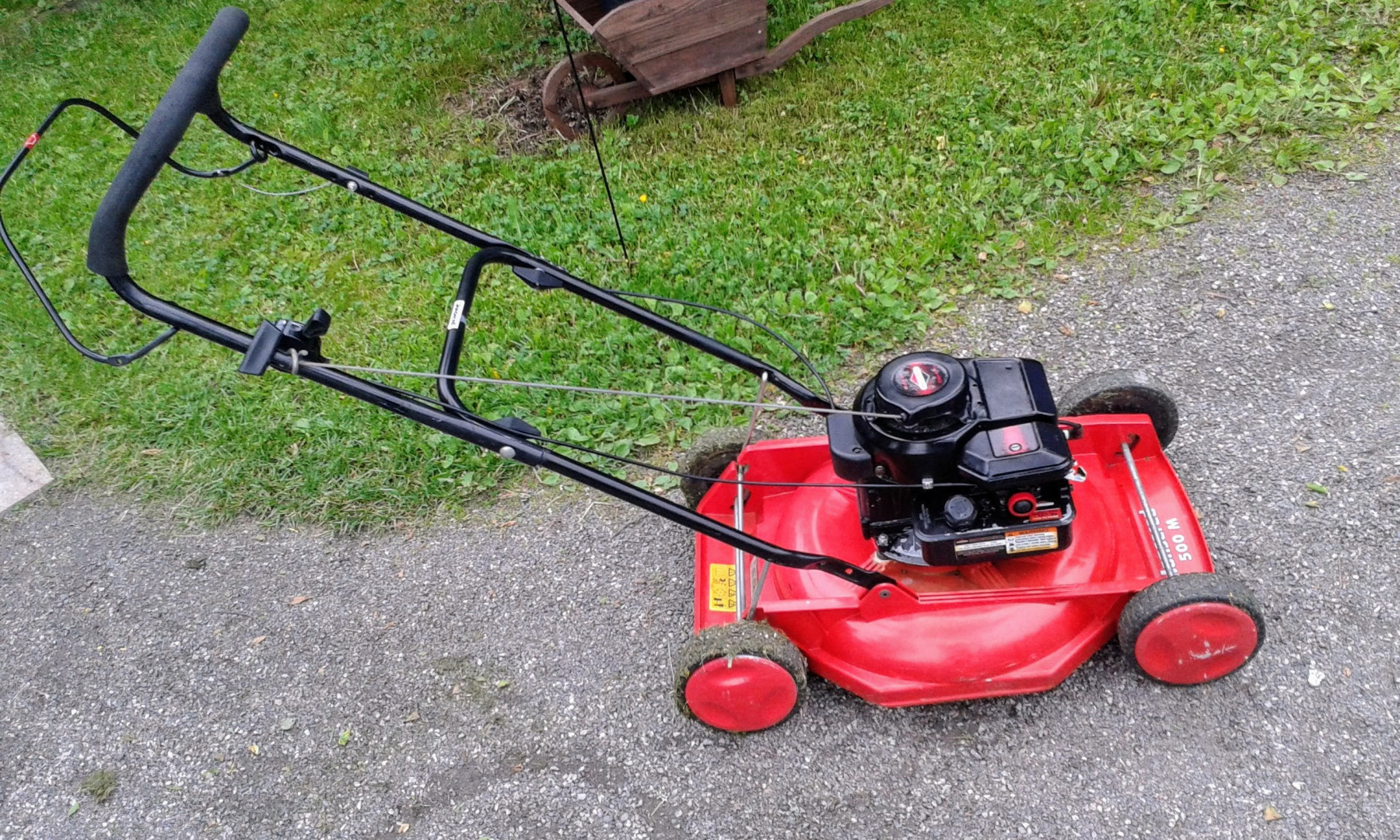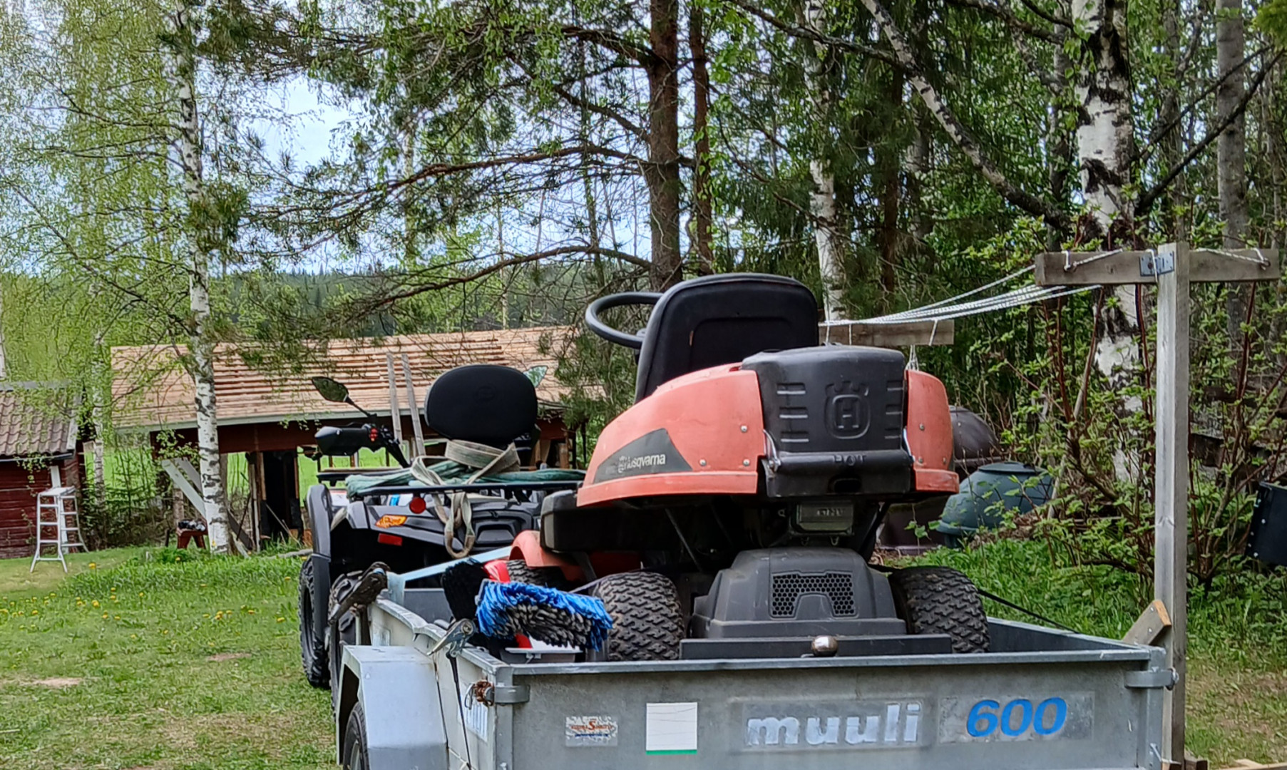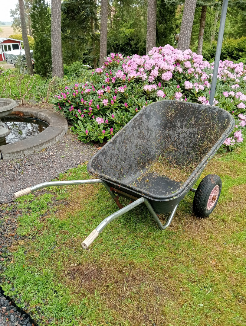 Piti kanssa nurmikkoja siistiä, tästä se taas lähtee... ja vanha Jonseredin rytöleikkuri, jolla työntelen ojanpohjia myöden, toimii aina vaan vuodesta toiseen. Talvetkin ulkosalla, vain kottikärryt päälle käännettynä.