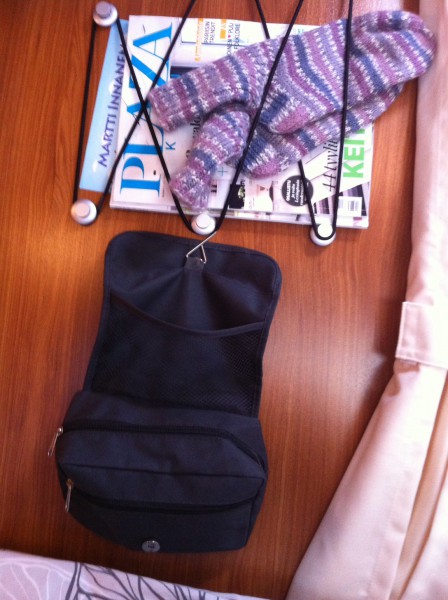 Tuossa kun ei ole mitään yöpöytää kännyköille, jotka siis toimii myös kelloina, niin ostin tarjouksesta mikämikä-merkkisen pussukan, jossa oli jotain dödöä yms. Siitä tuli varsin näpsäkkä säilö kännyköille, nenäliinoille ja mitä nyt yöllä keksiikään tarvita!  Thumb