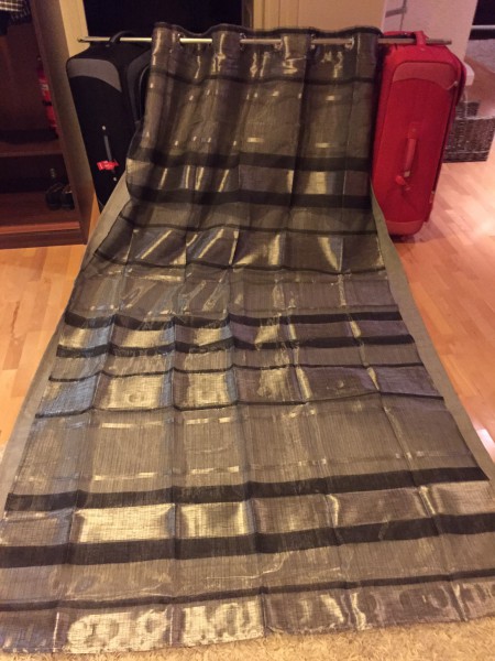 Matka töistä kotiin kesti kaksi tuntia. Hiukan oli ruuhkaa ja sit pyörähdettiin K-raudasta hakemassa hiekoitussepeliä. No, tokihan sieltä löytyi Kämpsylle kivan näköistä verhoa.