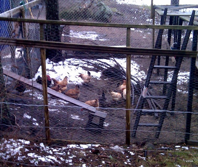 Tirpoilla ei ole mökkipihassa suuri paasto menossa, joten vein heille evästä, että tulevat toimeen suuren juhlan ajan räntäsateessa ja pakkasessa.  :D
