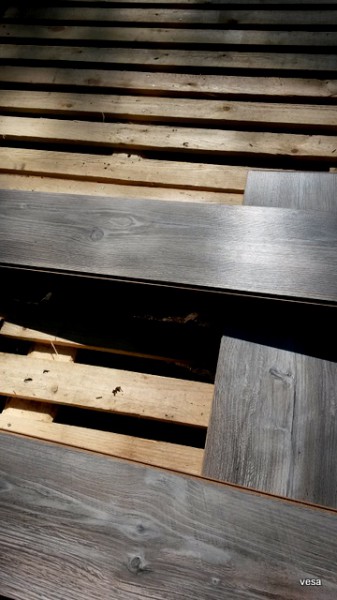 Aamutuimaan purkasin pihasaunan lauteet ja kannoin kiukaan ulos ja pesin saunan. Iltapäivällä parafiini öljyt lattialle ja lauteisiin. Nyt kuulemma täytyy lähteä kaupoille.