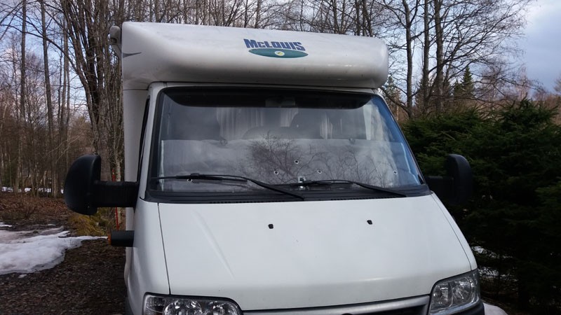 Kahtena kesänä on ollut pohjoisesta tultaessa kaksi ajopäivää hellettä ja aurinko on paistanut armottomasti vasten. Ja kun ilmastointilaitetta ei ole, mieleen on juolahtanut että auringonpaistetta voisi ehkä varjostaa. Noissa kuvissa on sitten mallia.