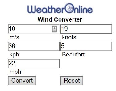 Weather Online näyttää vakiona boforeissa.