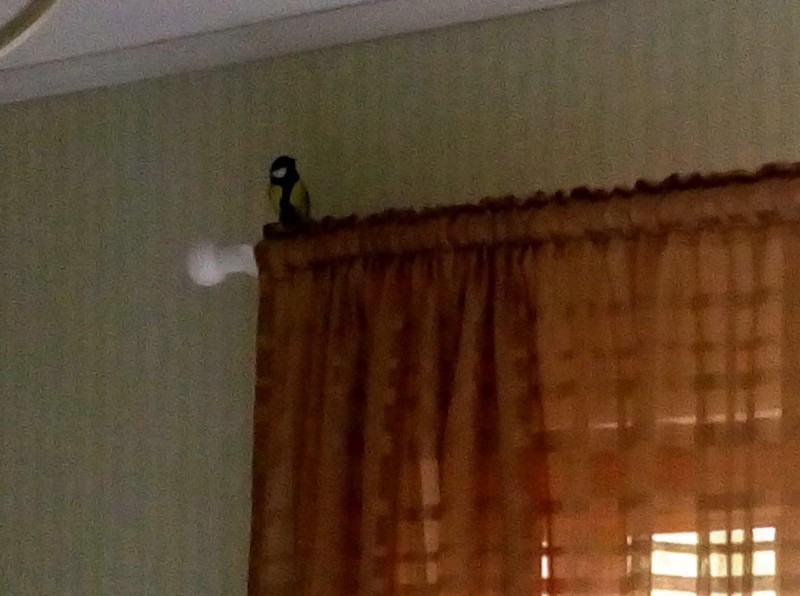 Tulevan talven ruokavieras kävi esittäytymässä ja käyttäytyi korrektisti. Pienestä avoimesta ikkunasta oli tullut, pariovet piti avata, että suvaitsi lähteä..