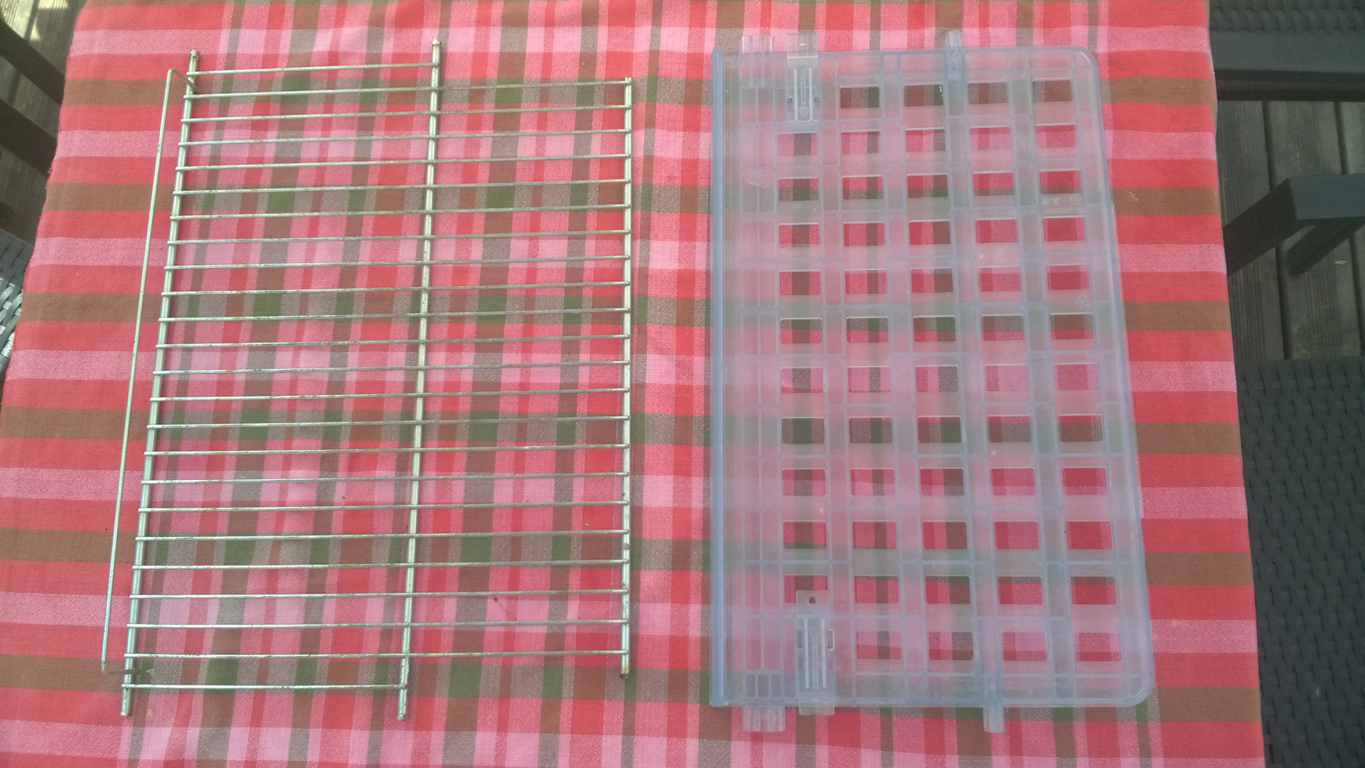 Ei mennyt kahtakaan vuotta, kun tajusin, että Atrian jääkaapista puuttuu yksi hylly. Tänään pienensin jonkun vanhan kaapin hyllyn sopivaksi. Muovinen on alkuperäinen, metallinen uusiohylly. Siitä tulikin huomattavasti tilavampi.