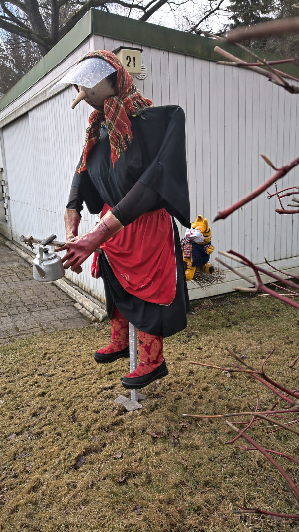 Kävelylenkillä. Veräjämäessä oli vielä pääsiäiscoronatunne lmat. Kissallaki suusuojain