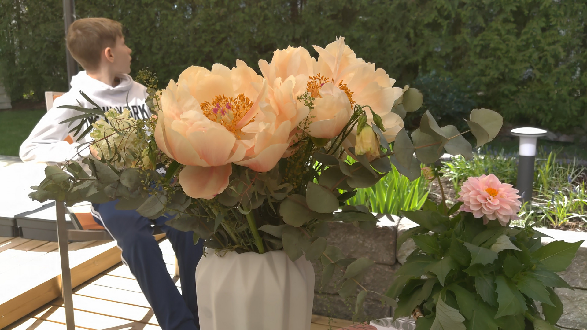 Oman äidin ja lasten isoäidin haudalle visiitti, kukkien kera