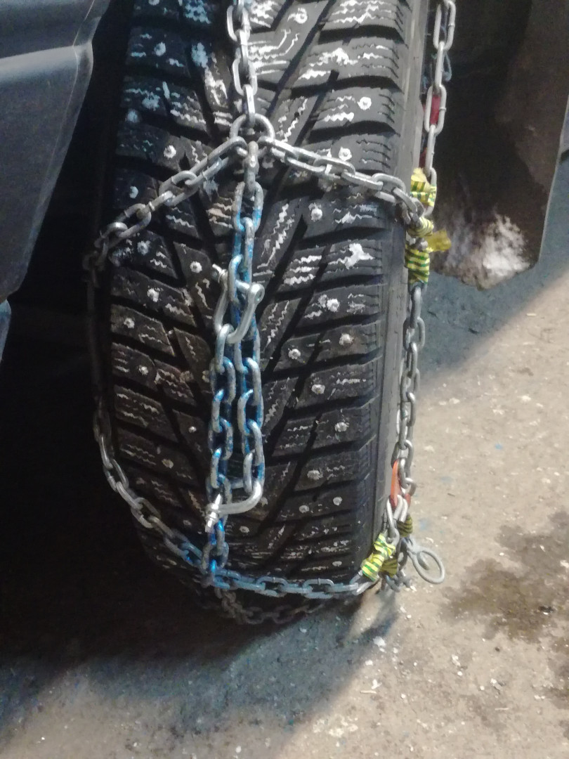 Jokatalvinen ketjusulkeinen aamulla, ei pariin vuoteen ketjuja käytetty. Tänään illalla ajettiin Virroilla mäki ylös jossa muutama vuosi keskinopeus oli 50 m./ h. Silloin meni rautalankaa ketjujen paikkaamiseen, kun ei ollut tuota selkäketjua. Nyt pakkaskeli, ei ongelmia, ei ketjuja.