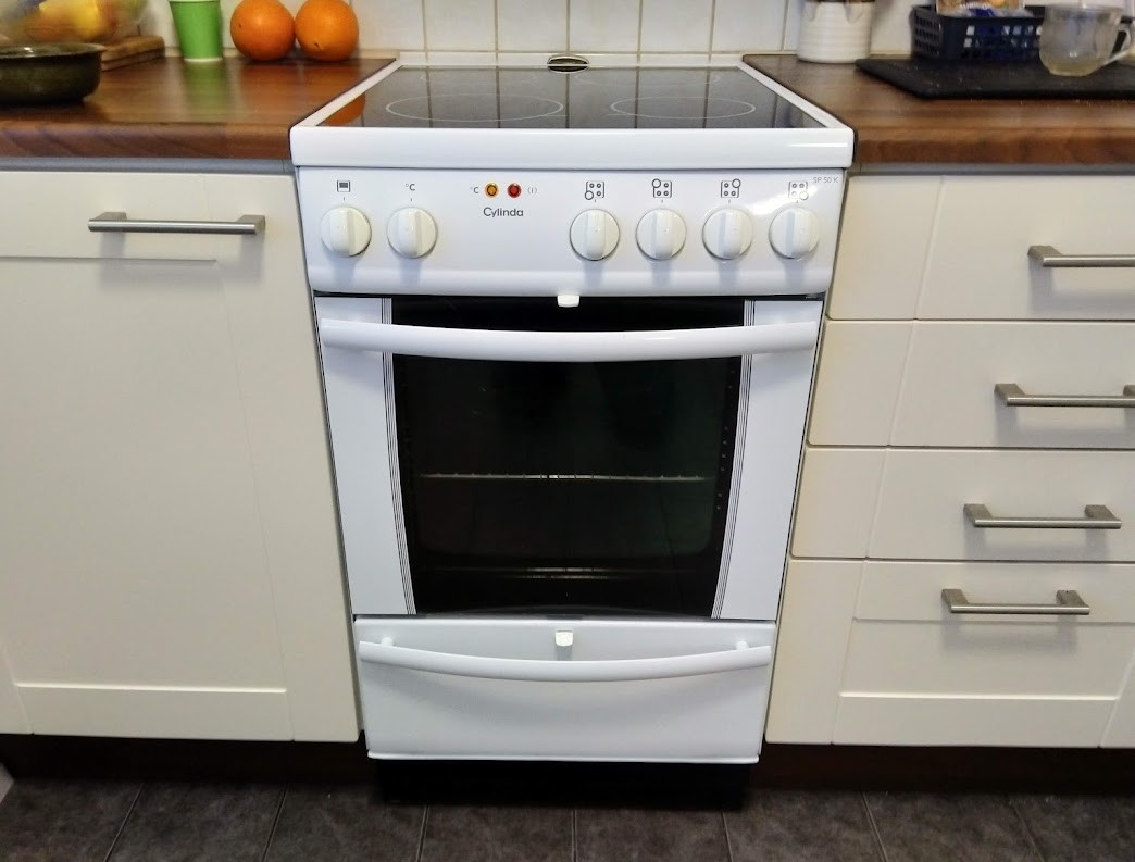 Tummensin sähkölieden valkoisen jalustan teipillä. Päivän työt on nyt tehty  :D