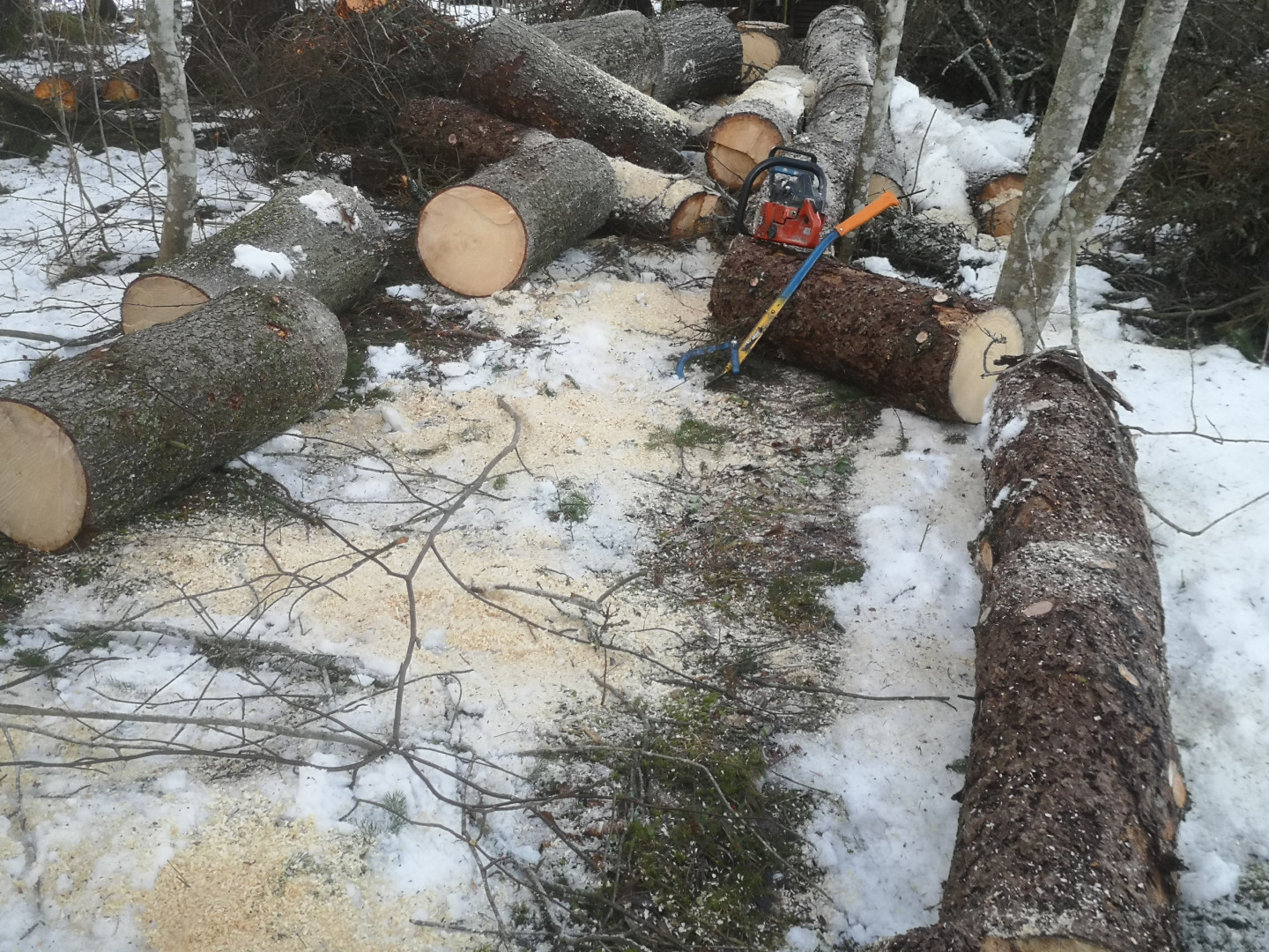 Eväät laitoin valmiiksi, jos tänäänkin muutaman pöllin halkaisisin/vetäisin ahkiolla oooppelin kuljettavan tien varteen.
