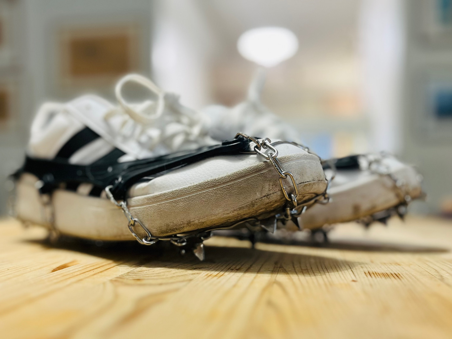 Lupailevat huonoa keliä viikolle. Tuossa viritellyt jalkineisiin edelleen järeämpää liukkauden estoa. Nimimerkillä "Ylilyönti on elämän mauste."