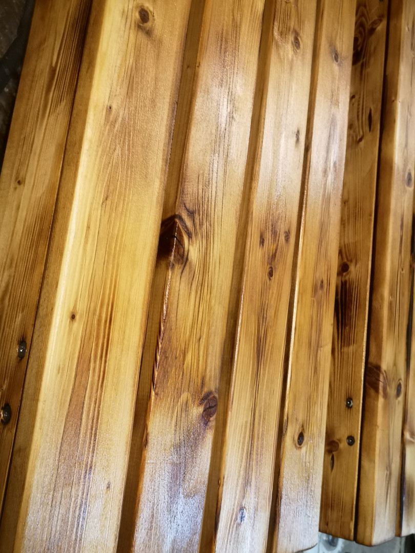 Saunan lauteet ym. helposti irtoavat, vein talliin hiottavaksi.  Sähkösinkityt ruuvi oli ihmeen paljon ruostuneet, pitääpä vaihtaa. Se oli mulle yllätys, kun aina lähtiessäni jätän puita pesään palamaan ja lattialämmitys on päällä. Myös lastalla kaavin vedet pois lattialta, jalkapyyhkeelläni viimeistelen.