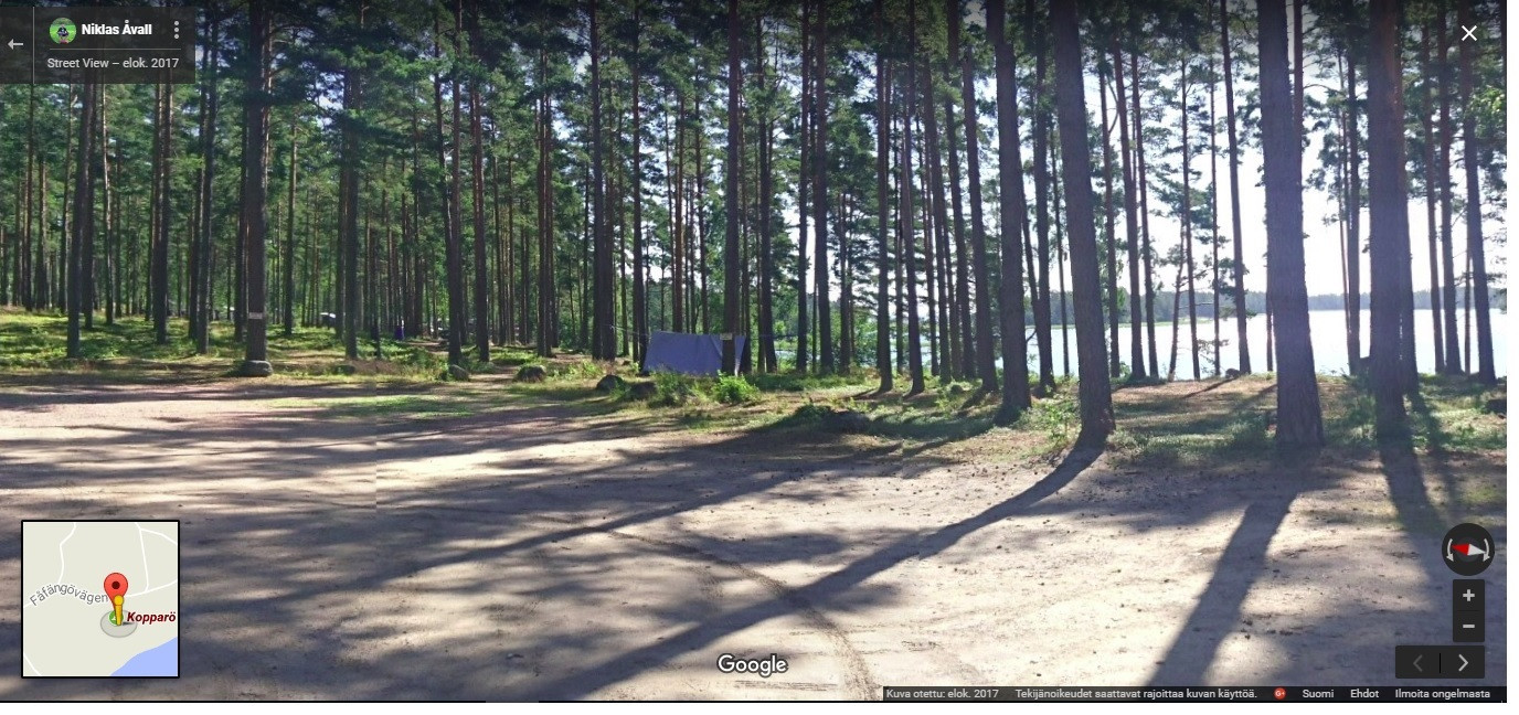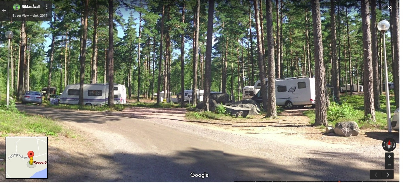 Siinä kun käännyt päätieltä vastaanottoon . On vasemmalla 5-6 paikkaa tehty uutta samoin pitkin aluetta muitakin. Ei tuossa nyt varpaat veteen ulotu. Mutta näköala Kopparön lahdelle ja päärakennuksen suihkut ja wc:t vieressä.