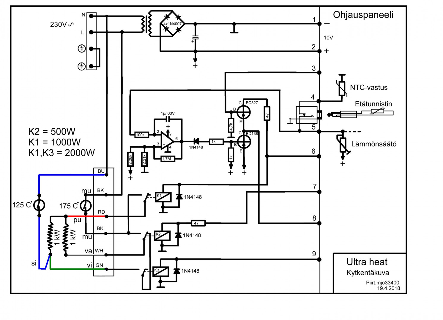 Viitsitkö mitata etäanturin ohmit noin 25 asteen lämpötilassa? Tässä kytkentäkuvat Ultra heatista.