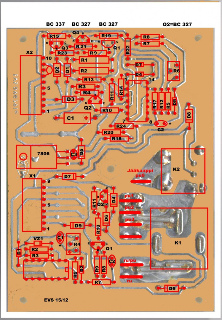 Nyt toimii,, vika oli releessä. Mjo ku linkitit sen saksan kielisen sivuston, siellä oli tuon kytkentä ohje calira esp 19/12 saksan kielellä. Kiitos vielä kerran ohjeista.