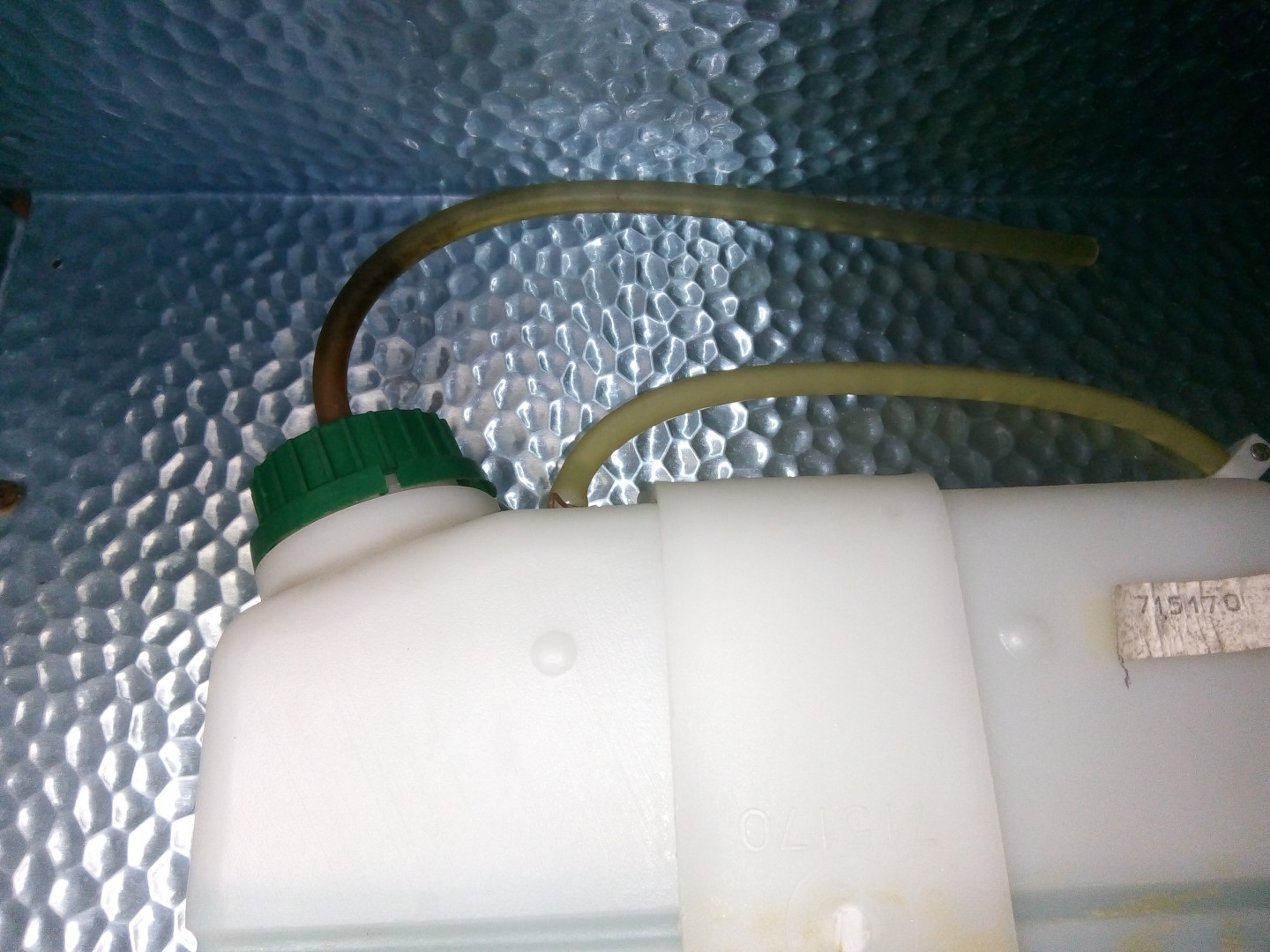 Ainoa ero tuohon Mjon kuvaan on se, että paisuntasäiliön yläpinnassa on korkin vieressä "nippa" johon tuo ilmausletku menee. Tämän lisäksi korkista siis lähtee samanlainen ohut n.6mm halkaisijaltaan oleva letku kotelon kattoon vapaaseen tilaan.