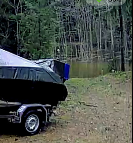 Mulla Huawein reititin vaunussa kesät talvet pakkasessakin ollut ja tuntuu pelaavan. Motorolan kamera (Motorola Focus 72) ja etäohjattava pistorasia käskytettävänä. Kännykällä ja tabletilla katson livekuvaa ja saan ilmoitukset liikkeistä. Softa toimii nykyisin hyvin, alkuun ei oikein kehuttavasti. Veden pintaa seuraillut, on noussut jo tielle. Onneksi kamppeet on mäen päällä, pitää nousta vielä reilut pari metriä, että olis pihassa vesi. Tuossa vahvasti zoomattu, veden alla on tie.  Mäen jyrkkyys ei näy kuvasta.