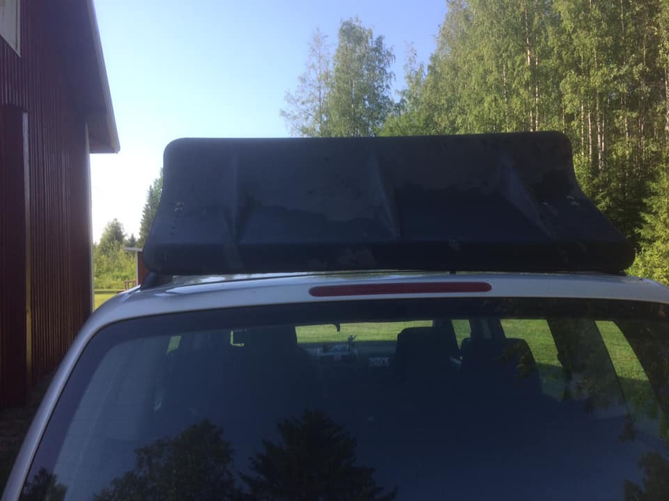 80 luvulla noita on viimeksi nähty ei ollut oikeen mitään hyötyy. Vai ei hyötyä? Minulla on omakohtaista kokemusta hyödystä. Minulla oli 80-luvun lopussa Rellu 18, vieläpä sedan, ja sen perässä Matkaaja 460. Tein itse vanerilevystä ja kattotelineestä ko. spoilerin näköisen tuuliavustimen. Rellu ei ollut kovin tehokas veturi vaikka olikin dieseli. Sen sai juuri ja juuri kulkemaan 80km/h. Spoilerin kanssa se kulki jopa 90 ja vaikka en tarkkoja kulutuslukemia muista, niin sen muistan, että nopeuden noususta huolimatta, kulutus putosi yhdellä litralla. Ja tämän tuloksen sain jopa ilman ilmavirtauksien tutkimista. Ps. Saattoi tietysti johtua siitä, että siinä ei ollut yhtään tarraa. ![]() Ps2. Valitettavasti mulla ei ole yhtään kuvaa siitä vaikka näin sen aiheuttamia hymyjä runsaasti kanssakulkijoilla. , Miks luulet et niin ei enää näy , jos niistä olis vastaavaa hyötyy , Imago kärsii, ei siihen muuta syytä tarvita. ![]() Vai ei hyötyä? Minulla on omakohtaista kokemusta hyödystä.No juurikin farmarihan tuo Volvo on . Kyllä tiedän että ilmanvastuksessa suurimpia vaikuttajia ovat nopeus ja pinta-ala. Ostohinta oli niin halpa että haluan kokeilla ja muiden mahdollisista puheista tai katseista en välitä. Mutta hiekkatiellä olen peilistäkin nähnyt kuinka kauheat pyörtee auton ja vaunun välissä on että jos tuo ohjaa ilman pyörteilyä niin silloinhan se vähän tekee jotain .