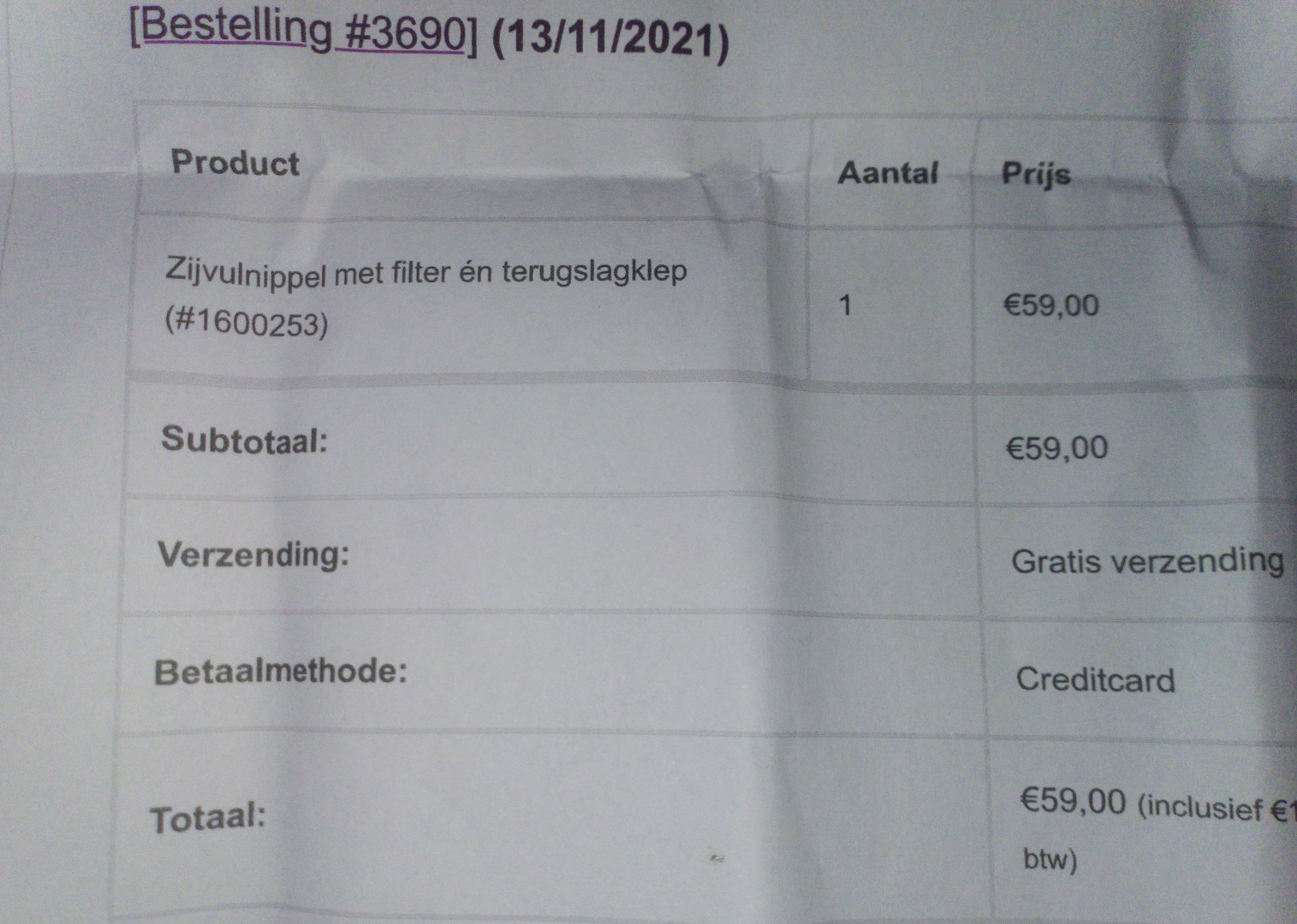 Posti toi, lauantaina tilasin paikalliselta kaasutarvikekauppia alta van Meenen.