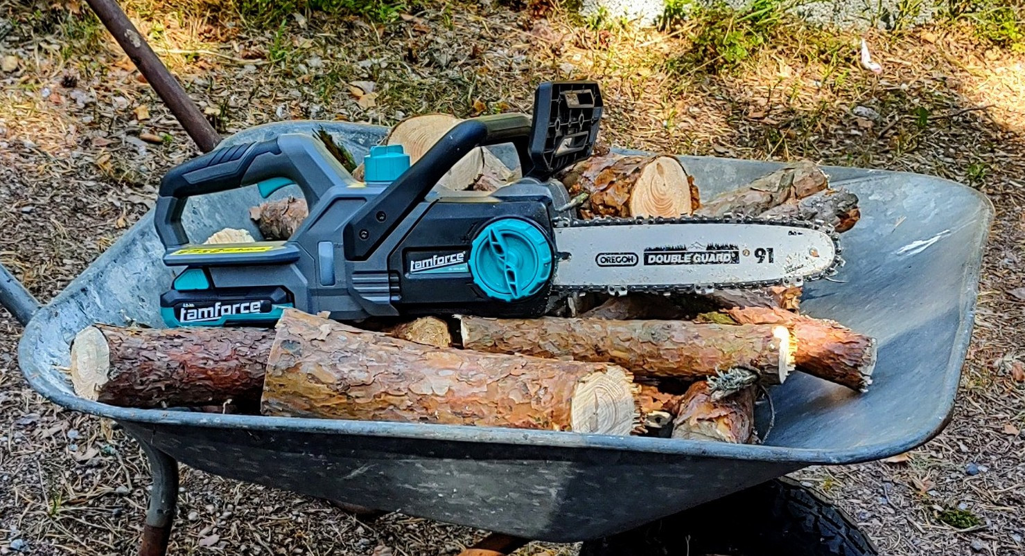 Ei raskinu makitaa laittaa. Aluks vähän huvitti, mutta kun hetken sahasi tuntui kätevältä risusavottaan. Ei tarvii pärryyttää peltorit päässä, eikä käynnistellä.