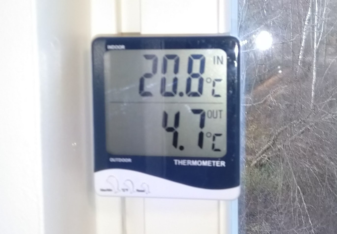 Lämpötilojen vilkaisuun isolta näytöllä.