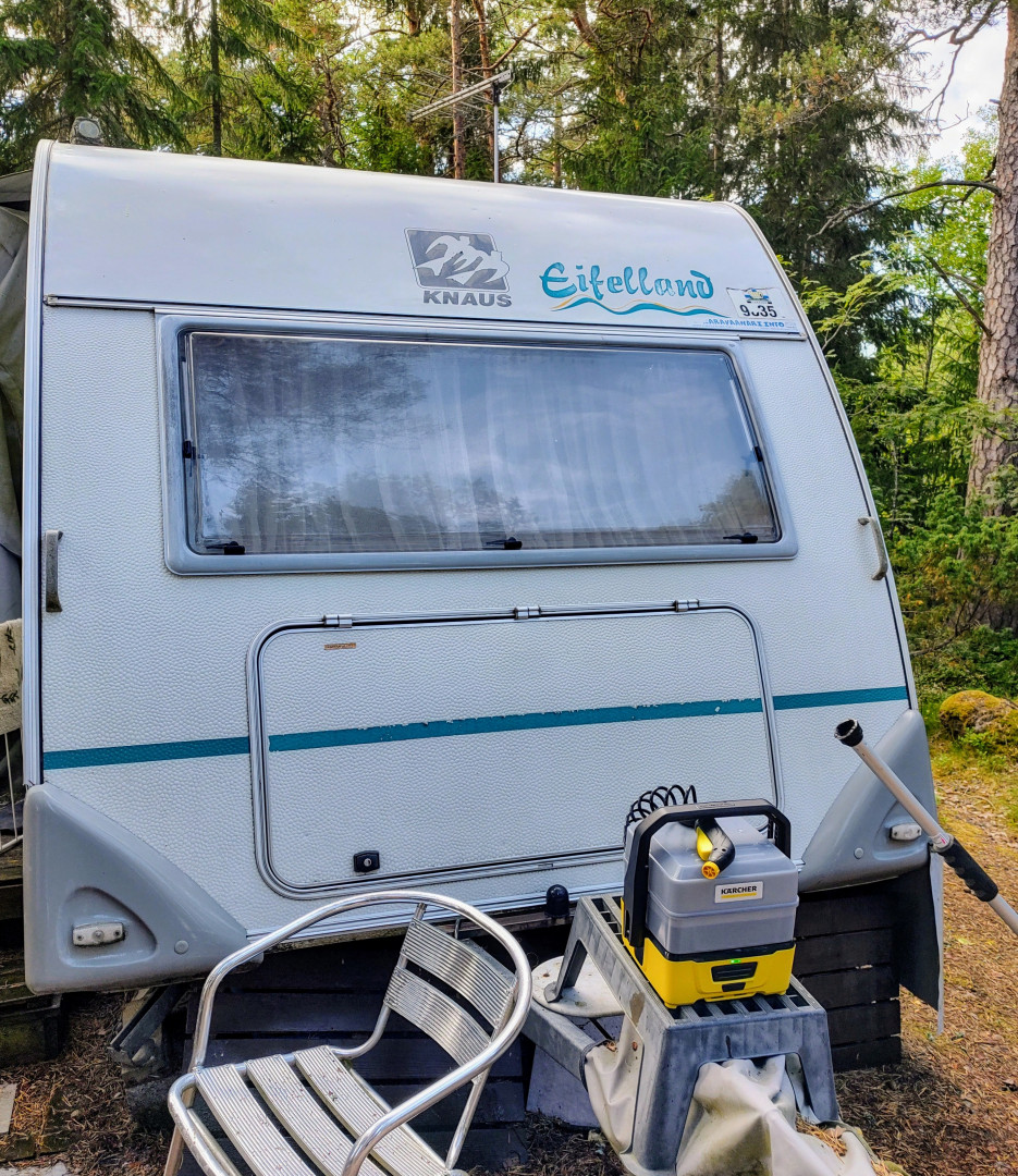 Näin on. Pikku Kärcherillä pesen nykyään autot ja vaunut. Ohlsonin pesuri oli jo täysin palvellut.
