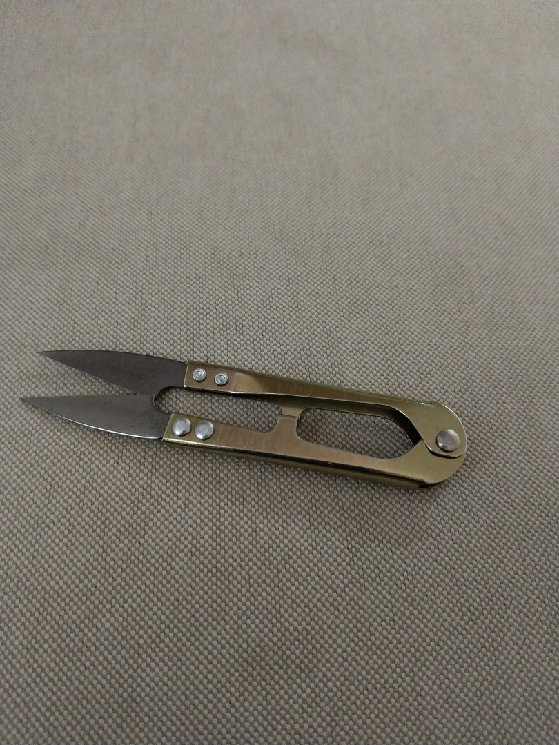 Tällaiset pienet sakset kalaverkon tekoon/korjauksiin.