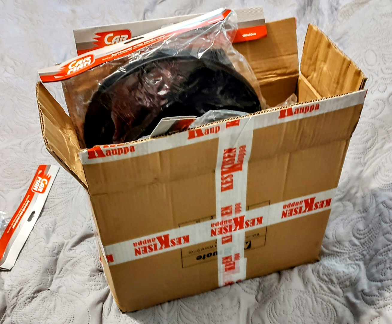 Piti saada pakun liukuoveen jotain näkösuojaa, 100X50 aurinkosuojat oli aika harvassa tai tyyliin 12.90€ plus lähetyskulut, Keskisen kaupassa ne oli euron kappale, tilasin kaikki 5 kpl, 9,95€ posteineen. 🙂