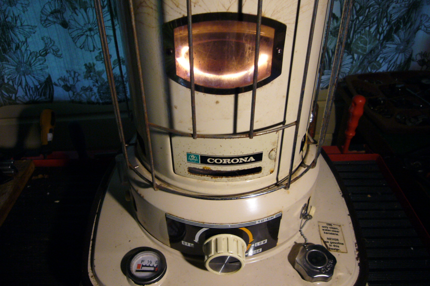 Lämpöisestä säästä huolimatta energiavärkki esiin. Japanissa tehdään muutakin kuin autoja.  Corona on yksi laadukas ja tunnettu petroolilämmitin idän saarelta.  Nykyisen tavan mukaan ja Amerikkaan markkinoinnin vuoksi laite on varustettu lukemattomilla varoitus- ja kieltoteksteillä.