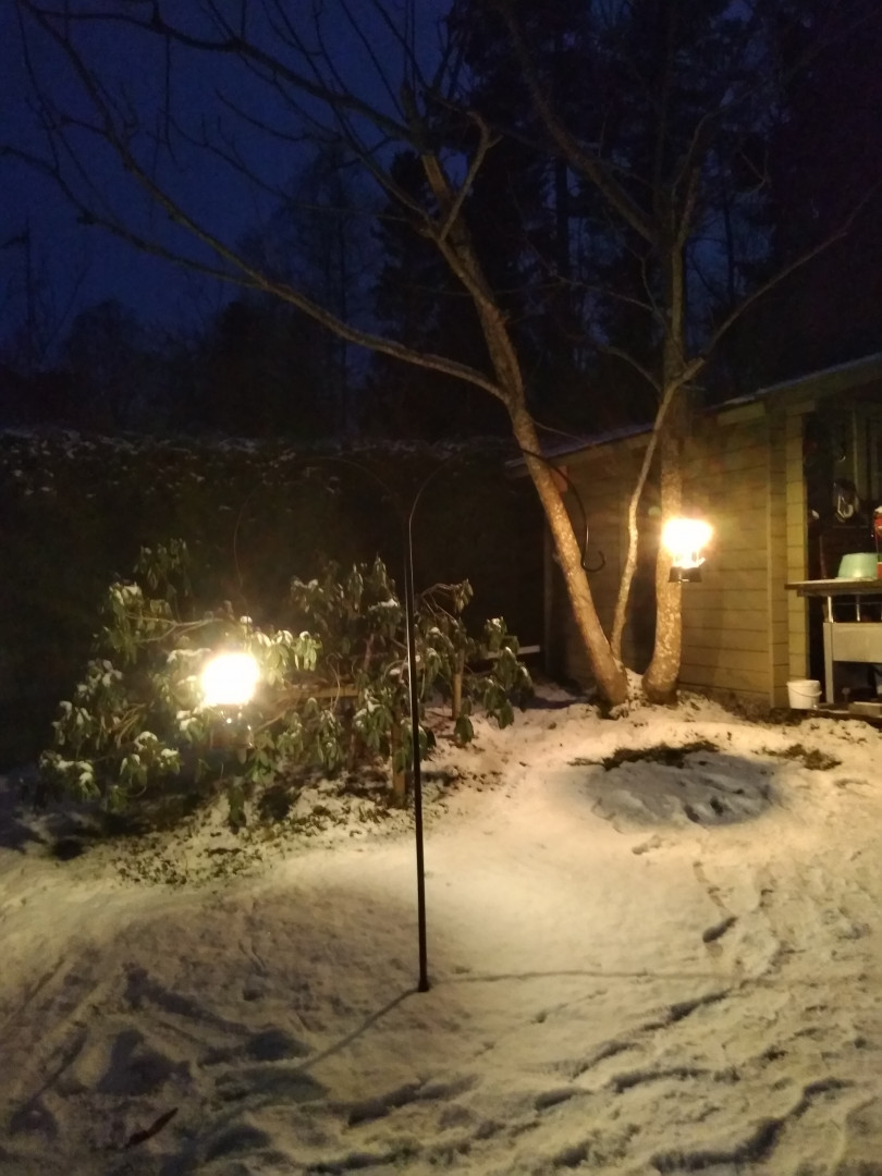 Meillä pimeys hiipii pihapiiriin jo kello kolmen kieppeillä mutta petrovalolla tehdään suuria reikiä mustuuteen.