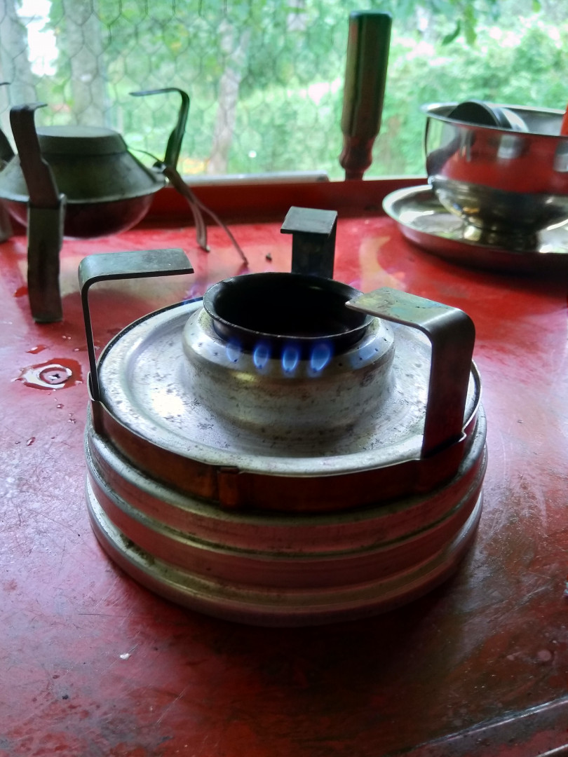 Toimintakuntoon tuli saatettua "uusi" 90-luvun venäläisvalmisteine n bensakeitin. Oli ilmeisesti koitettu poltella kakstahti pensalla, haisi meinaan sen verran mopolle kun laatikon avasin. Hyvin syttyi ekalla tikulla, paloi vain hieman heikosti. Rassauksen ja seisottelun jälkeen paloikin jo iloisella liekillä punahehkuisena. Nyt passoo keitellä puurot metsäreissuilla.  Lähetetty minun TA-1004 laitteesta Tapatalkilla