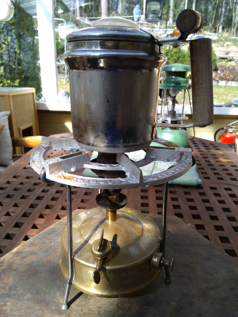 Tuosta keittimestä vielä hivenen asiaa. Kyseinen malli oli valmistettu maailmanlaajuiseen vientiin. Säiliössä olevat tekstit osoittavat sen. Mitä Suomesta vietiin maailmalle vuonna 1927 ? Kauppa se on joka kannattaa, siis myynti, ei ostaminen. Jos ei ole myytävää niin ei tule vasta ostoksiakaan. Saunojakin on niin harvassa maailmalla....