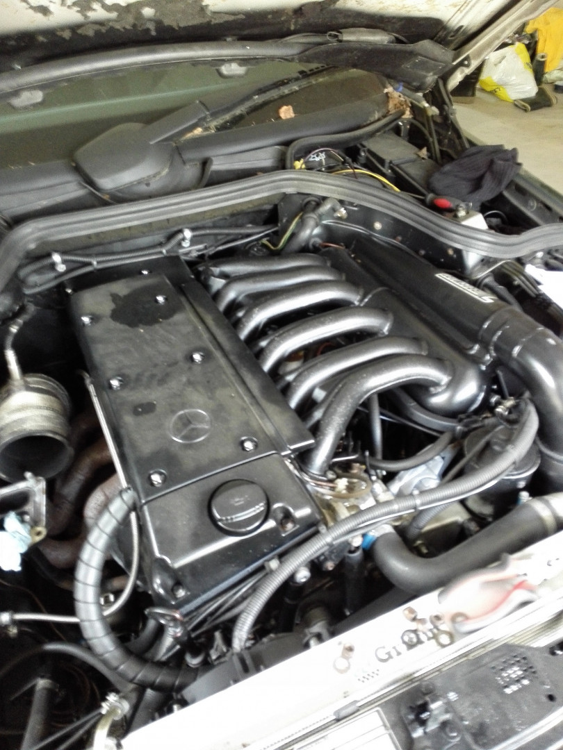 Vanhin poika harrastaa mersuja ja teki 700hv mersun siviili käyttöön, kuva otettu kun odottelee uutta turboa.On käytetty penkissä.