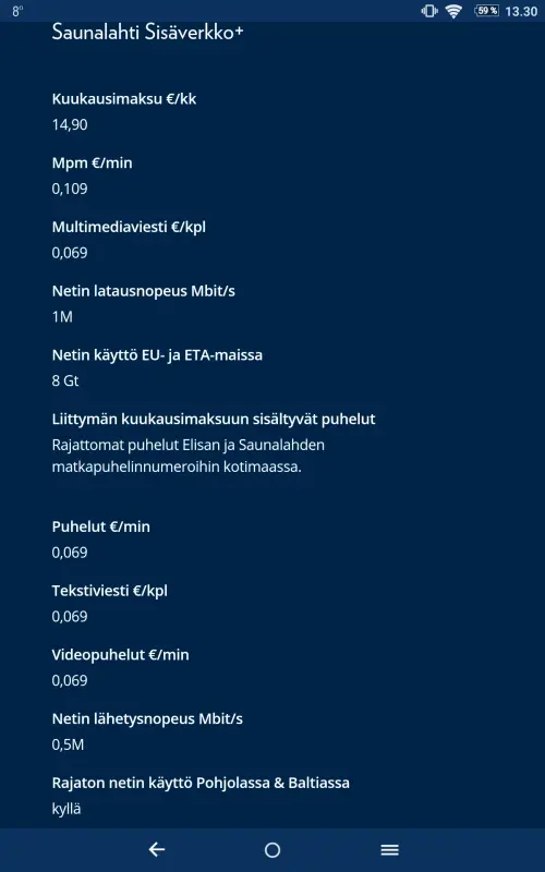 Kuvassa nykyinen liittymä, jonka lähtökohtana oli alunperin 3,95€ kk ja saman konsernin littymiin sai höpöttää kyllästymiseen asti. Eli aikoinaan lajissaan tosi hyvä. Kaikessa hiljaisuudessa se pikkuhiljaa noussut ja nyt perusmaksu on 14.90€ + viestit ja puhelut kilpaileviin liittymiin. Vaihtoon menee.
