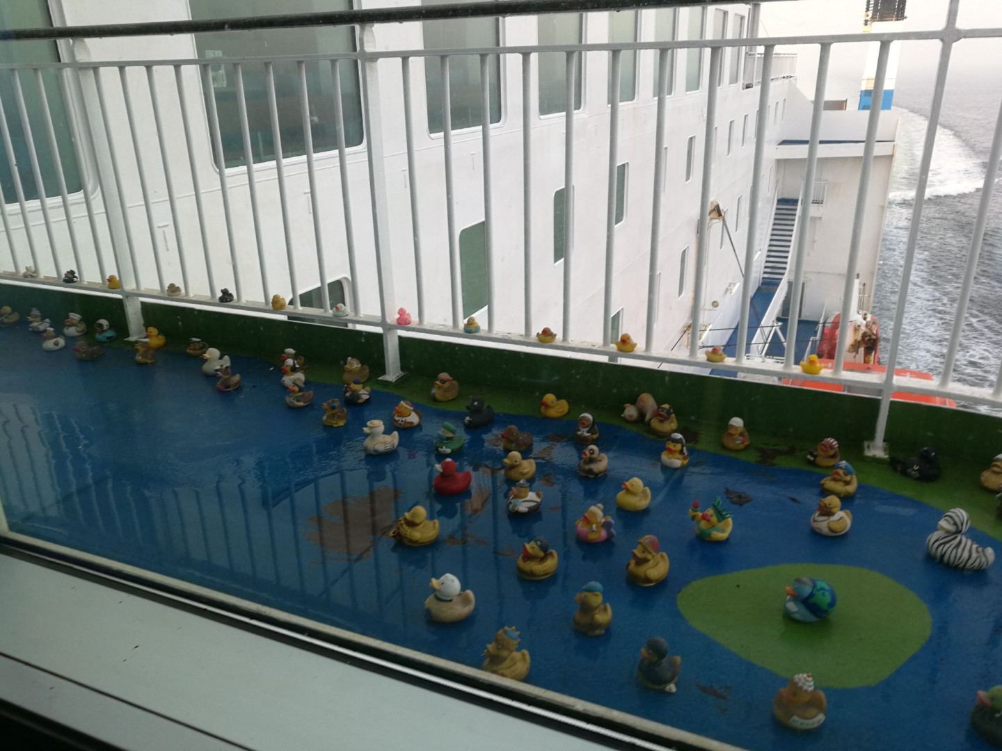 Reissu on alkanut. Laivalla nyt ja porukkaa todella paljon. Autokannet myös täynnä. Bussilastillisia on ilmeisesti muutama.