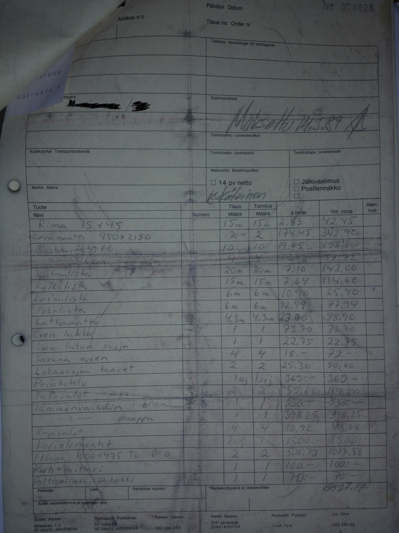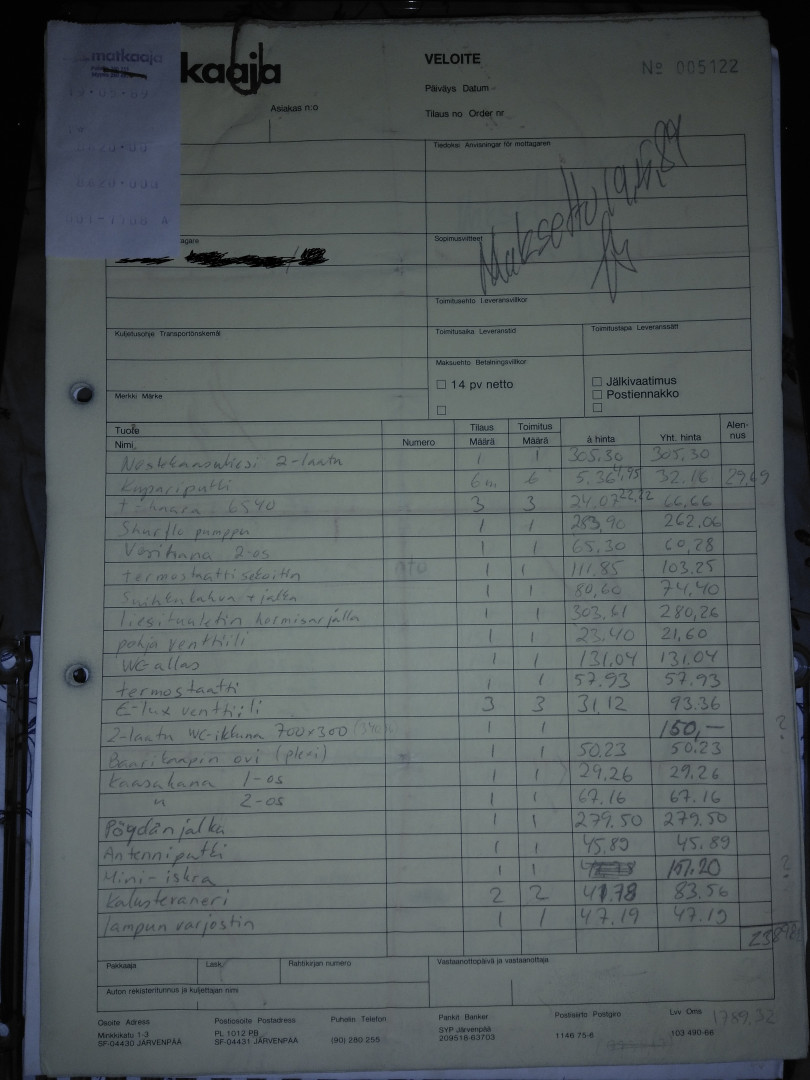 Tuli Projektii vähän tarvikkeita, vaneria ja kalusteita. Kiitos vielä T.R Vaunupuolelta.