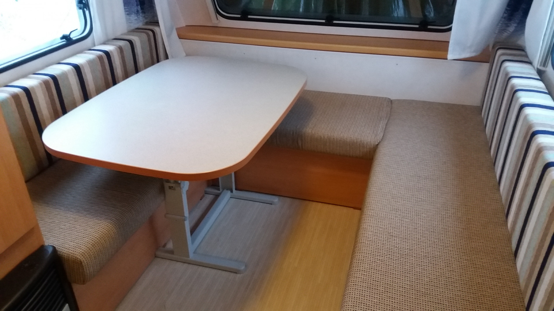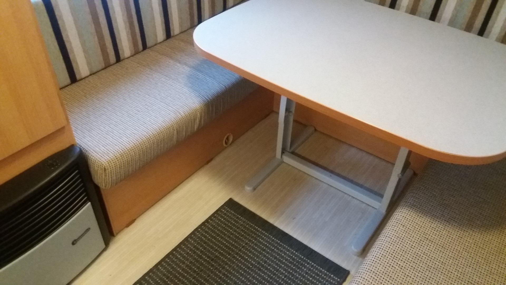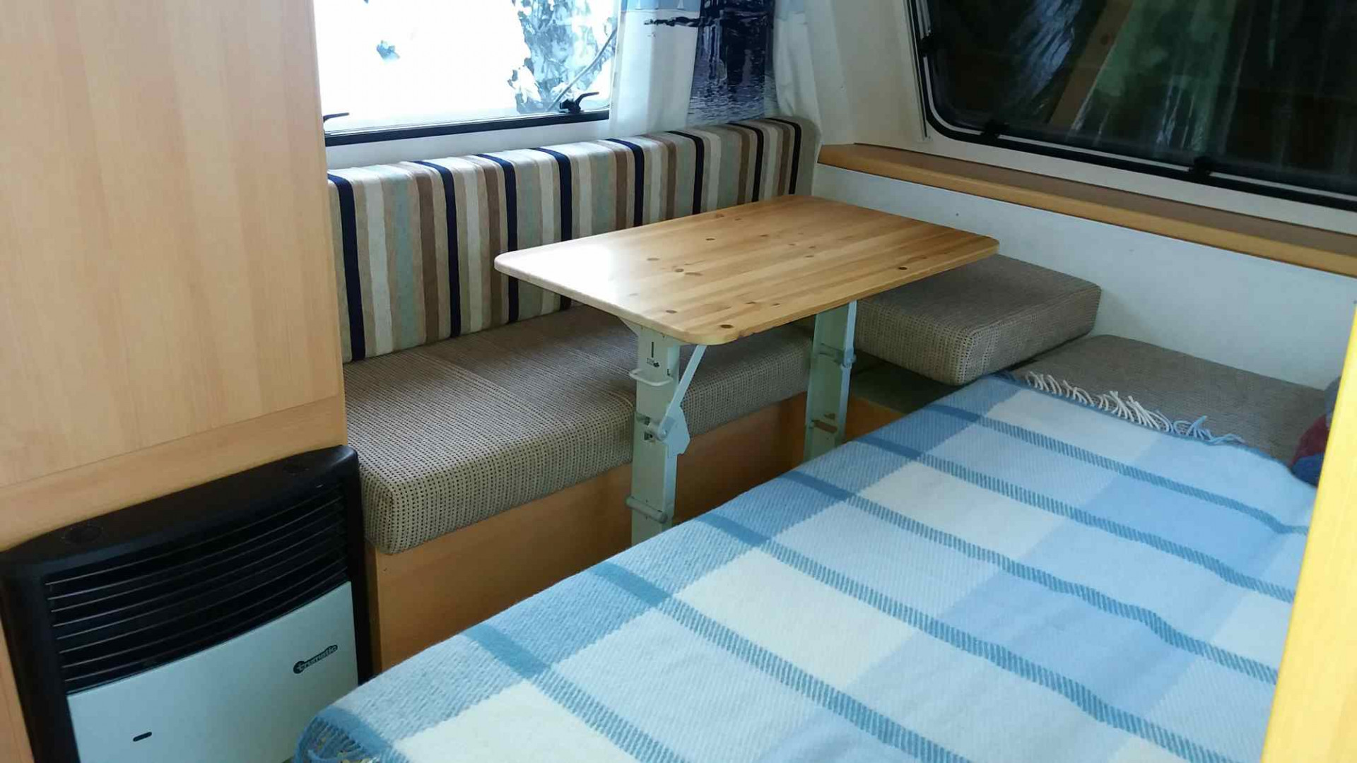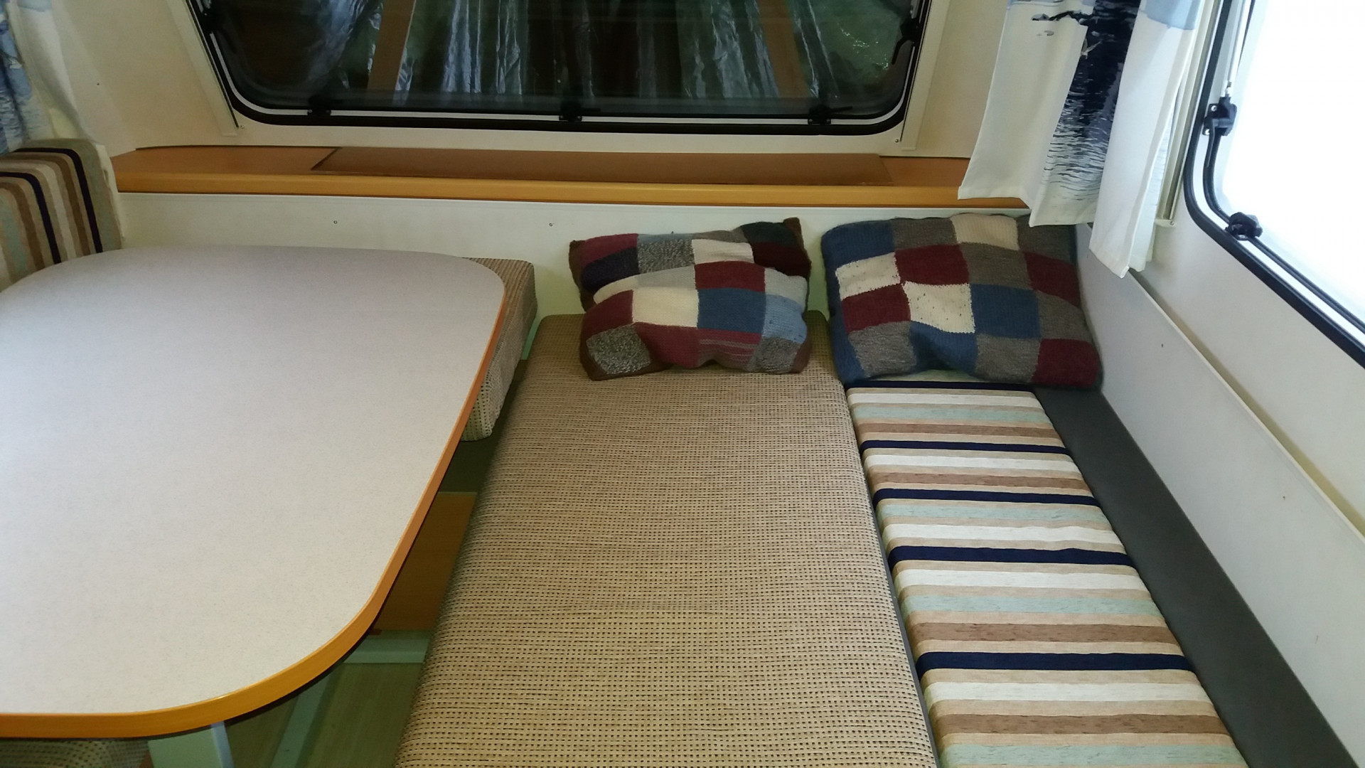 Innostuin nyt asiasta ja olenkin suunnitellut koko aamupäivän toteutusta. Kävin vaunussa mittailemassa ja siirtelemässä pöytää ja patjoja ja sain mielestäni kelpo suunnitelman.