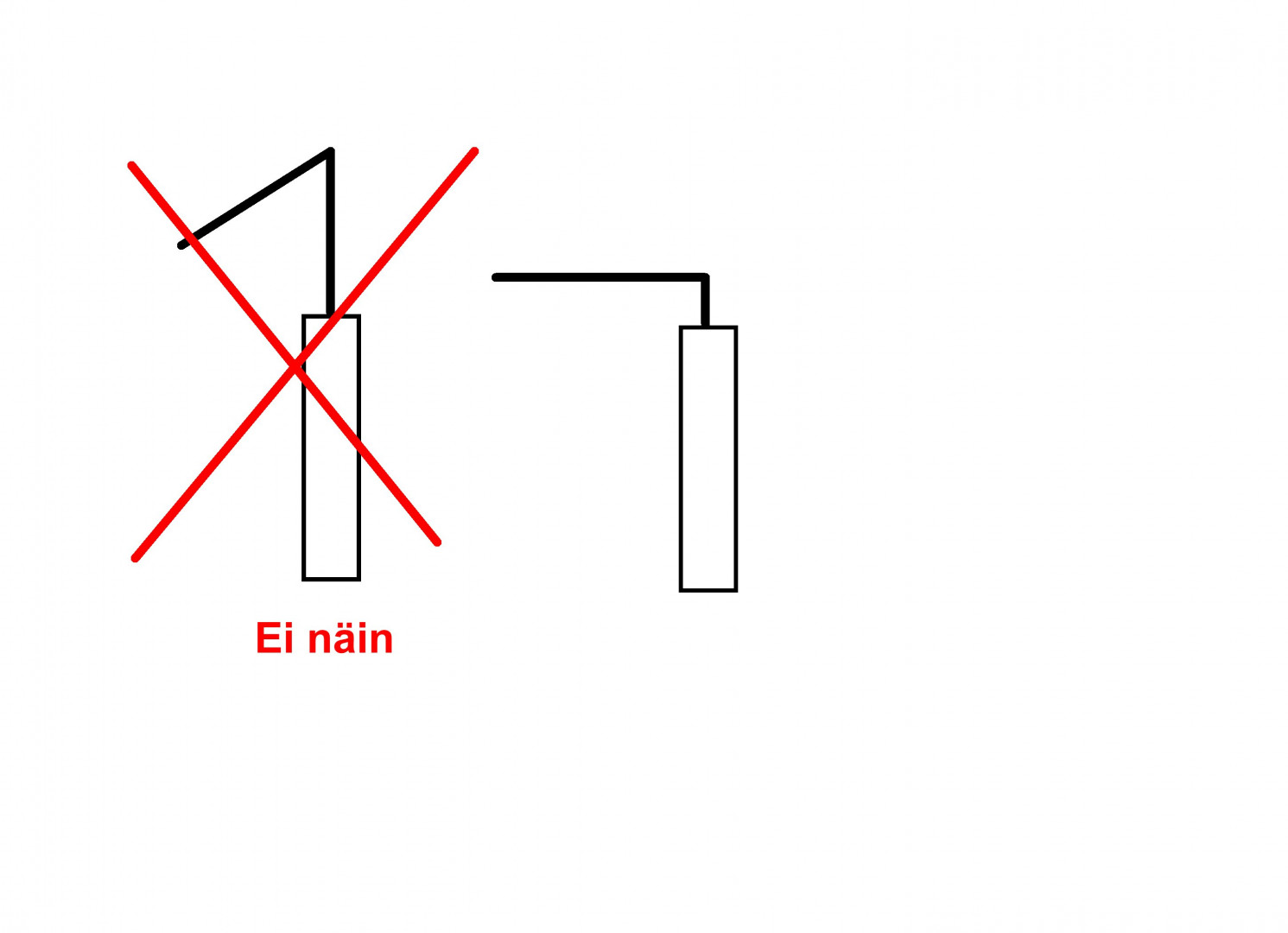Taivutitko kärjen ensin suoraksi ja sitten läheltä eristettä uudelleen vai käänsitkö vain kärkeä alaspäin. Jos taivutit vain alaspäin niin kärjen mutka osuu palotilan yläosaan.