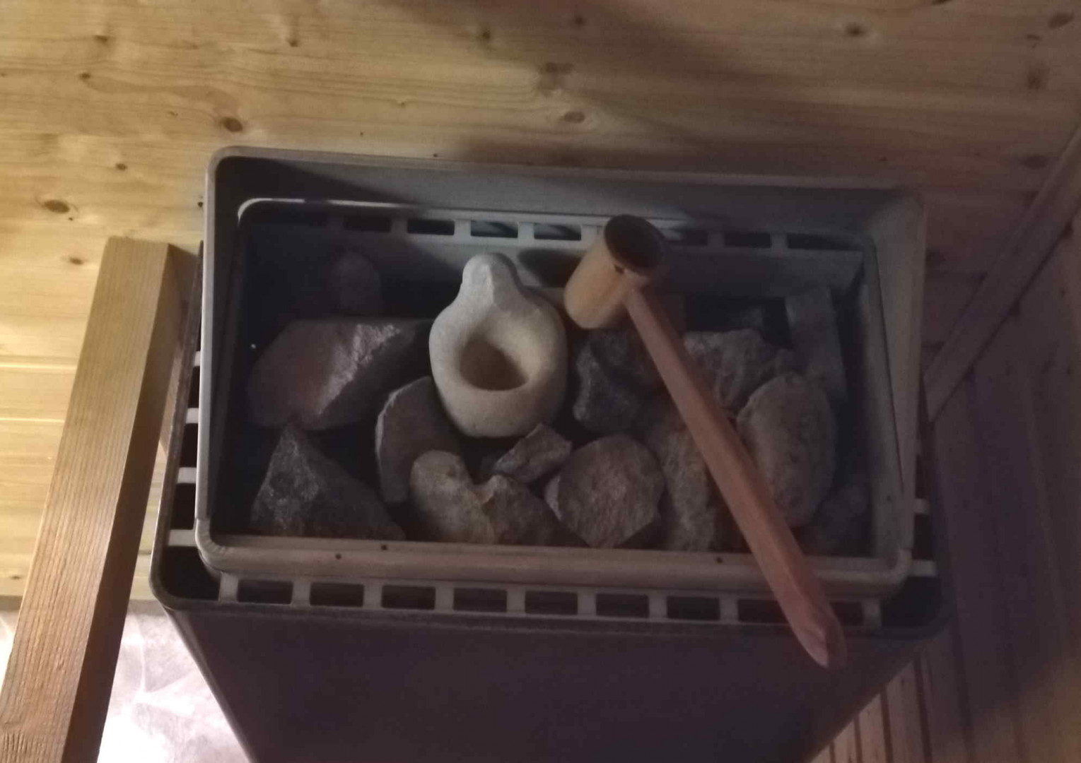 Joulumuori toi vuolukivisen "löylyukon" lahjaksi, joten tein sille oman löylykauhan. Löylyukon kuppi täytetään kauhalla, nojataan selkänojaan ja kohta vesi kiehuu yli ja antaa pehmeän löylyn.