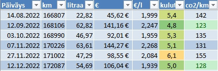 Pitemmältä ajalta tankkaukset, kilometrit ja ajotietokoneen lukema vaikka Excel-taulukkoon.