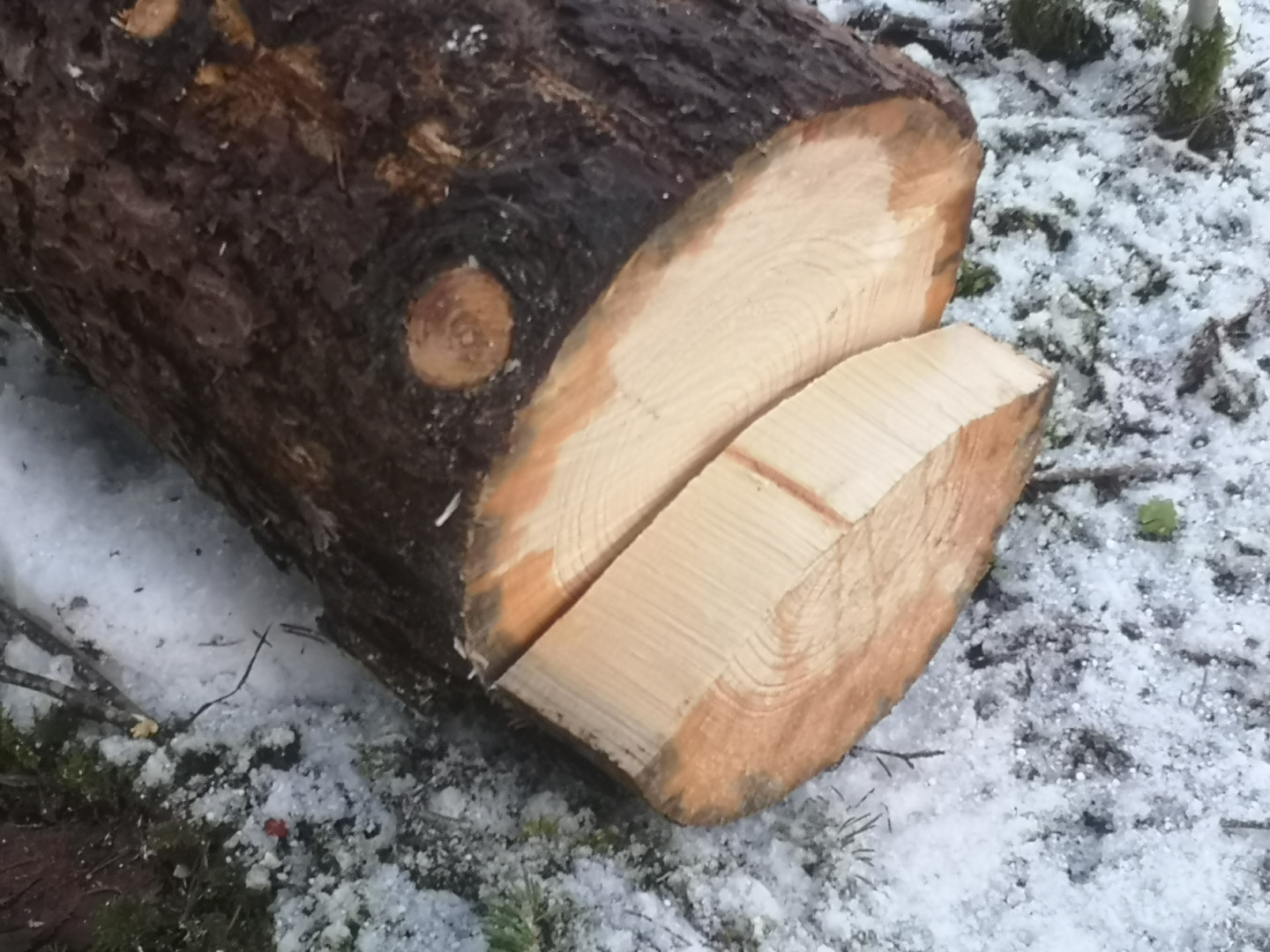 Noh pakko opetella asioita, että saan 30-40 mottia vuodessa klapeja turvallisesti tehtyä. Siirtokaadon opettelin (kuten muutkin isompien kaadot) Metsolan metsäkoulun videoista. Näytti samalta tuo leikkaus.