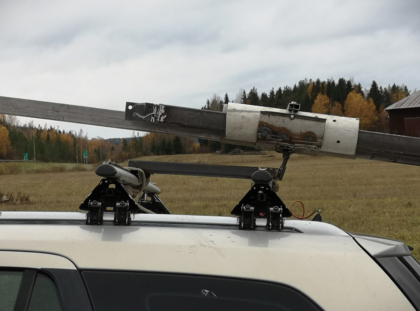 Periaatteessa ihan käypänen yhdistelmä - itsekin toin 13m lasikuitulipputango n vastaavasti tyvi voortin lavalla, nuppipää jatkoaisallisen kärryn päällä olevan venepukin päällä. Kaikki sidottuna siten, että käännöksissä 2 nivelpistettä ja yhdistelmä toimi liikenteessä, eikä takaylitys ollut edes 2m. Ihan 90ast kulmiin sillä ei päässyt, eikä ollut tarpeenkaan.