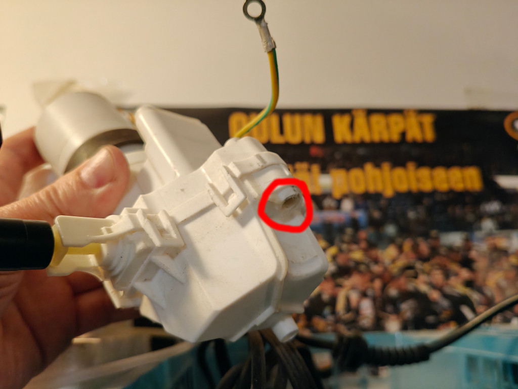 Tuossa vielä kuva siitä (K5) painekytkimen sähkömötikästä. Jos lohkosta (paineen vaikutuksesta) tuleva tappi jää jumiin tuonne, ei pesuri käynnisty kun "luulee" että lohkossa on täysi paine.