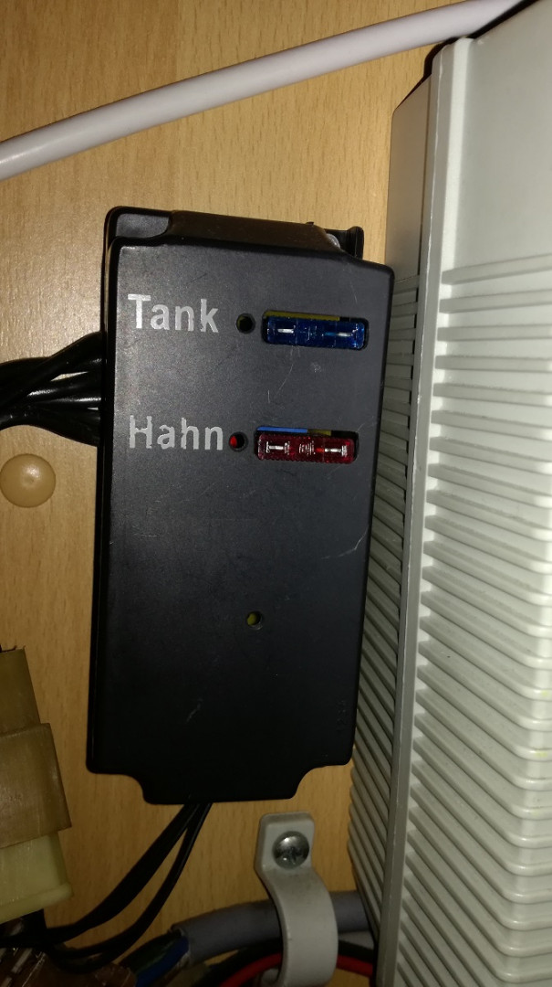 Kolmas laite: Tank=säiliö, Hahn= hana. Olisiko joku käyttövesipumpun releboksi?