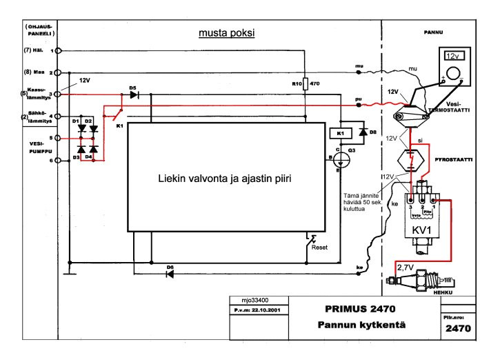 Olen koittanut Primus juttuja lueskella muttei oikein aukea. Primus 2470 johon laitettu kipinä sytkä ei ole ollut meidän aikana ikinä toiminnassa ja osa johdoistakin oli otettu irti.
